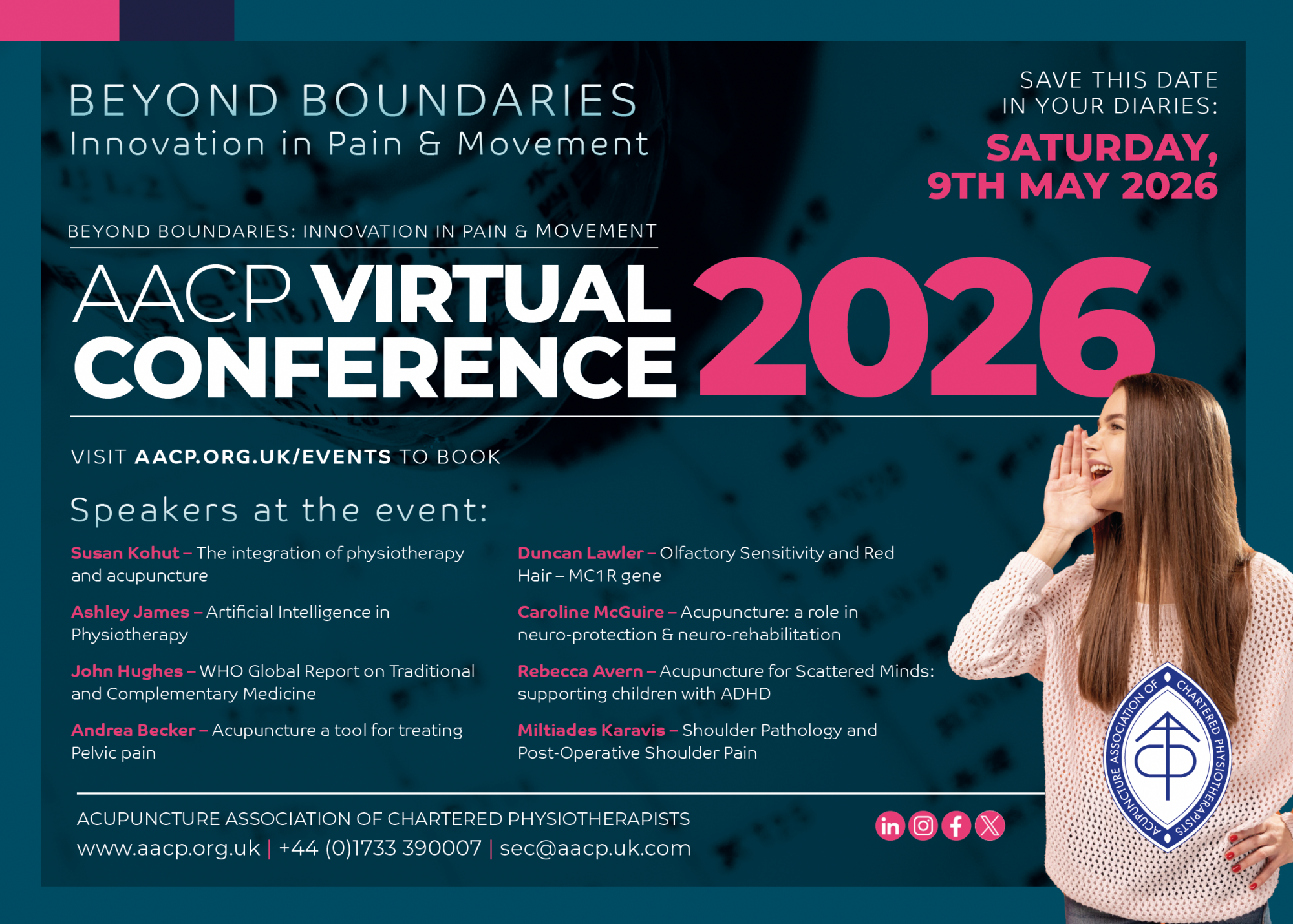 This year’s program explores innovation, integration, and clinical excellence across acupuncture, physiotherapy, rehabilitation, pain science, and global health perspectives.